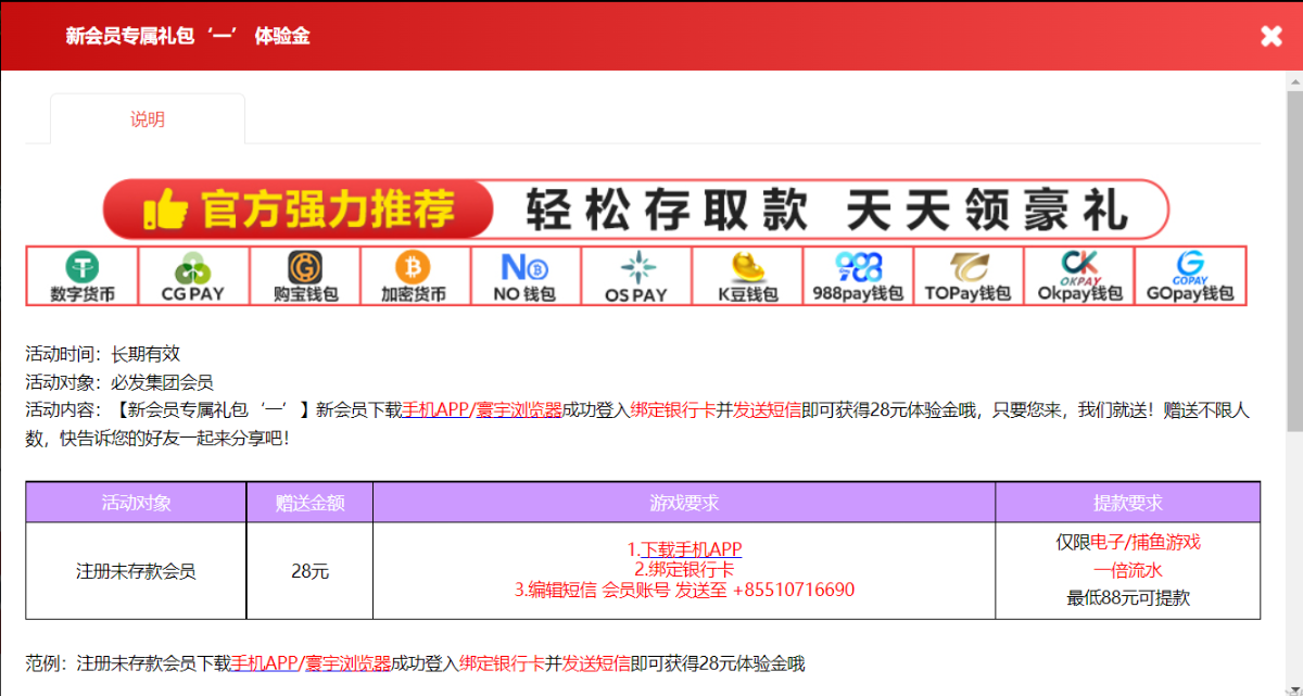 我记得上次是老哥发帖说 进去注册账号绑定银行卡 过几天会打电话送58  刚刚打电话送了我58 200流水提现  麻将1和麻将2都是假的  老哥们没事可以进去看看 多注意电话