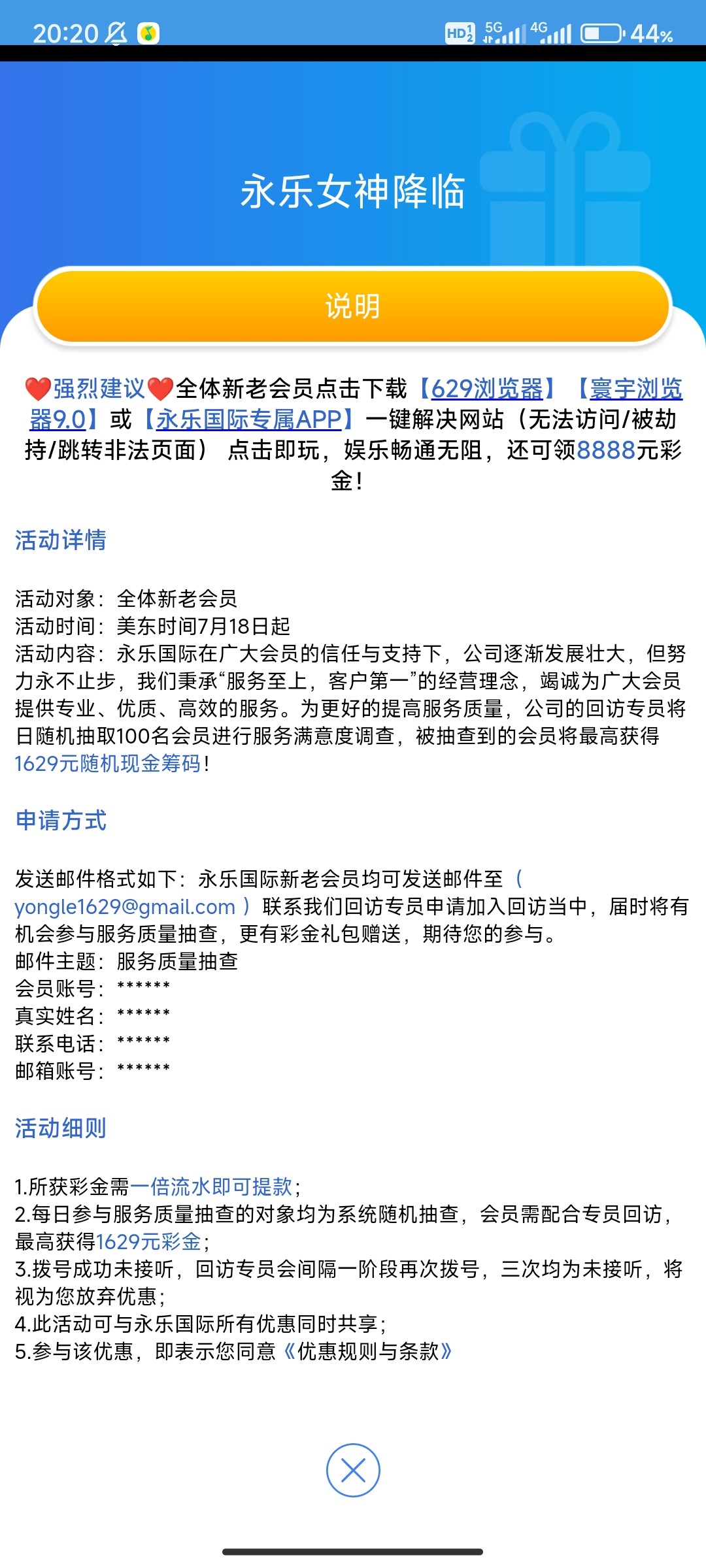 永乐申请电话回访彩金
