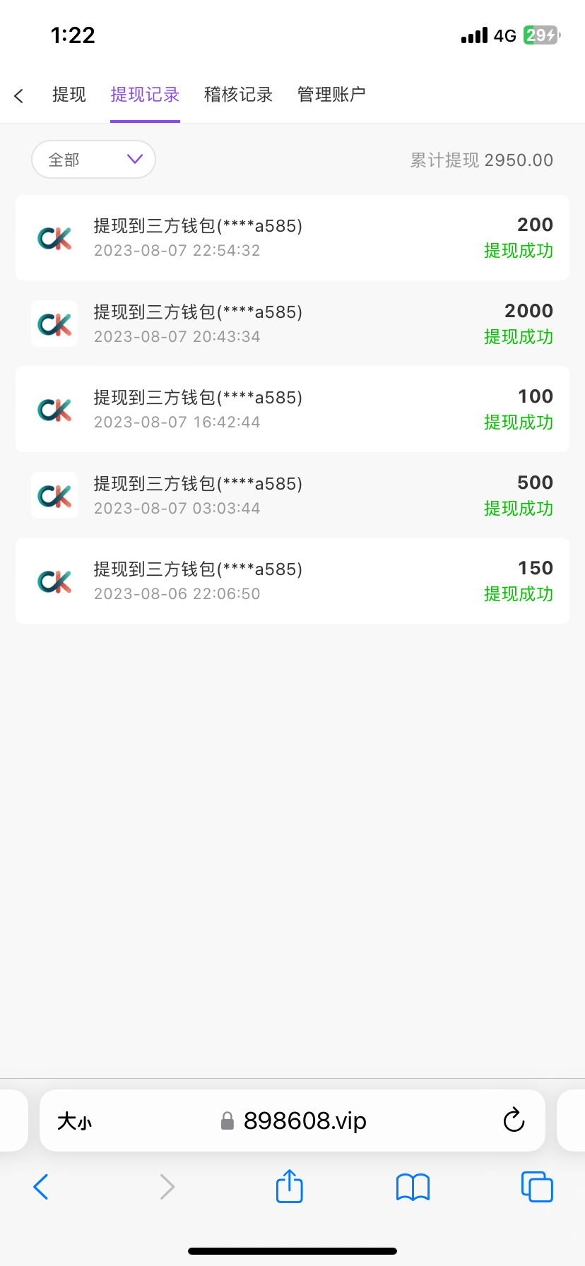 到账情况:到