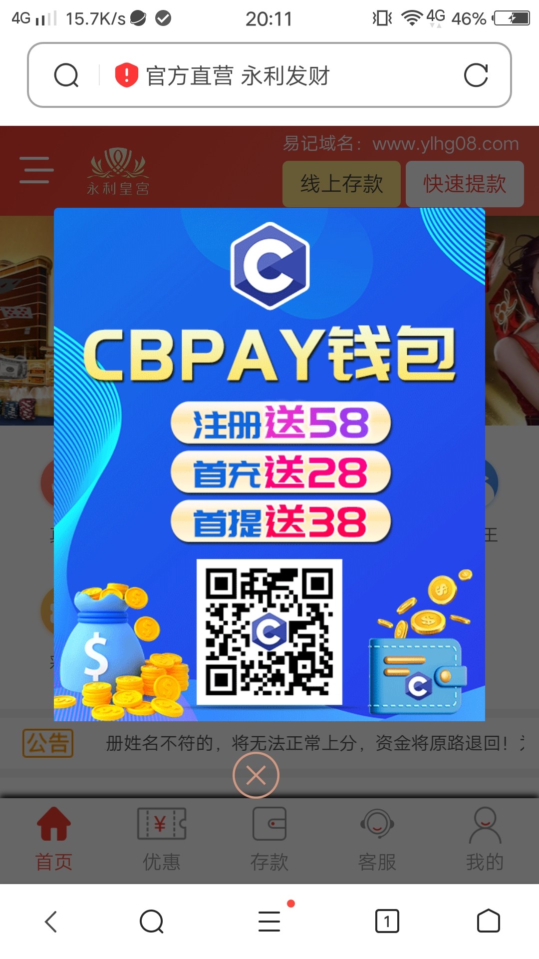 找个有cbpay的台子,充值10块然后打流水提10块到cbpay就可以了,然后直接用cbpay充值58