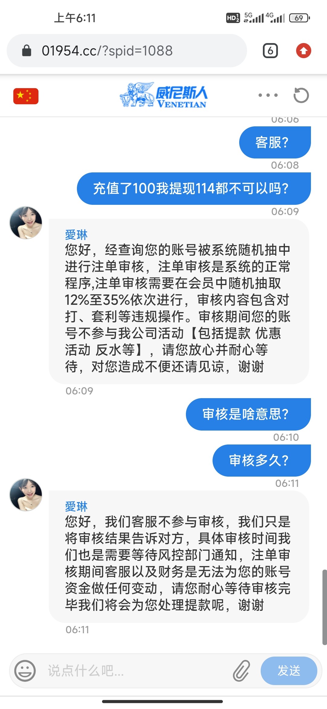 直接给我黑了,账号锁定了不让我提。我充值了100,你还能提