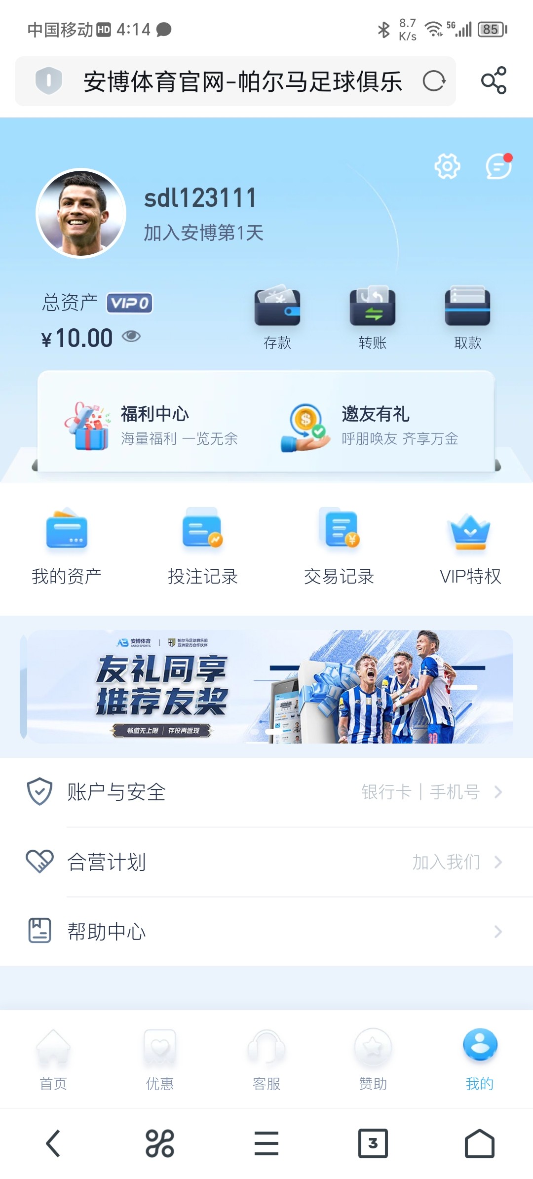 新用户注册优惠里面新人活动绑定手机号绑卡秒领18彩金/100提现具体自测,切记勿充值。