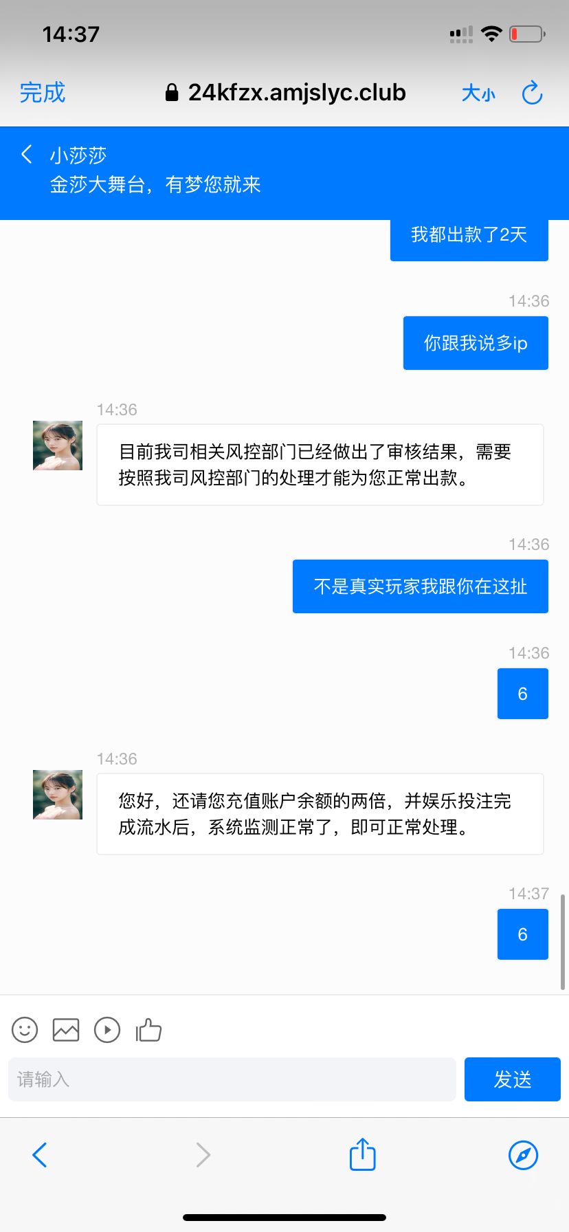 尘落 对,狗庄又不是你爹妈一直给你送钱,你都出款成功两次了,想继续嫖就充一次也很正常。这次不支持你这个垃圾。