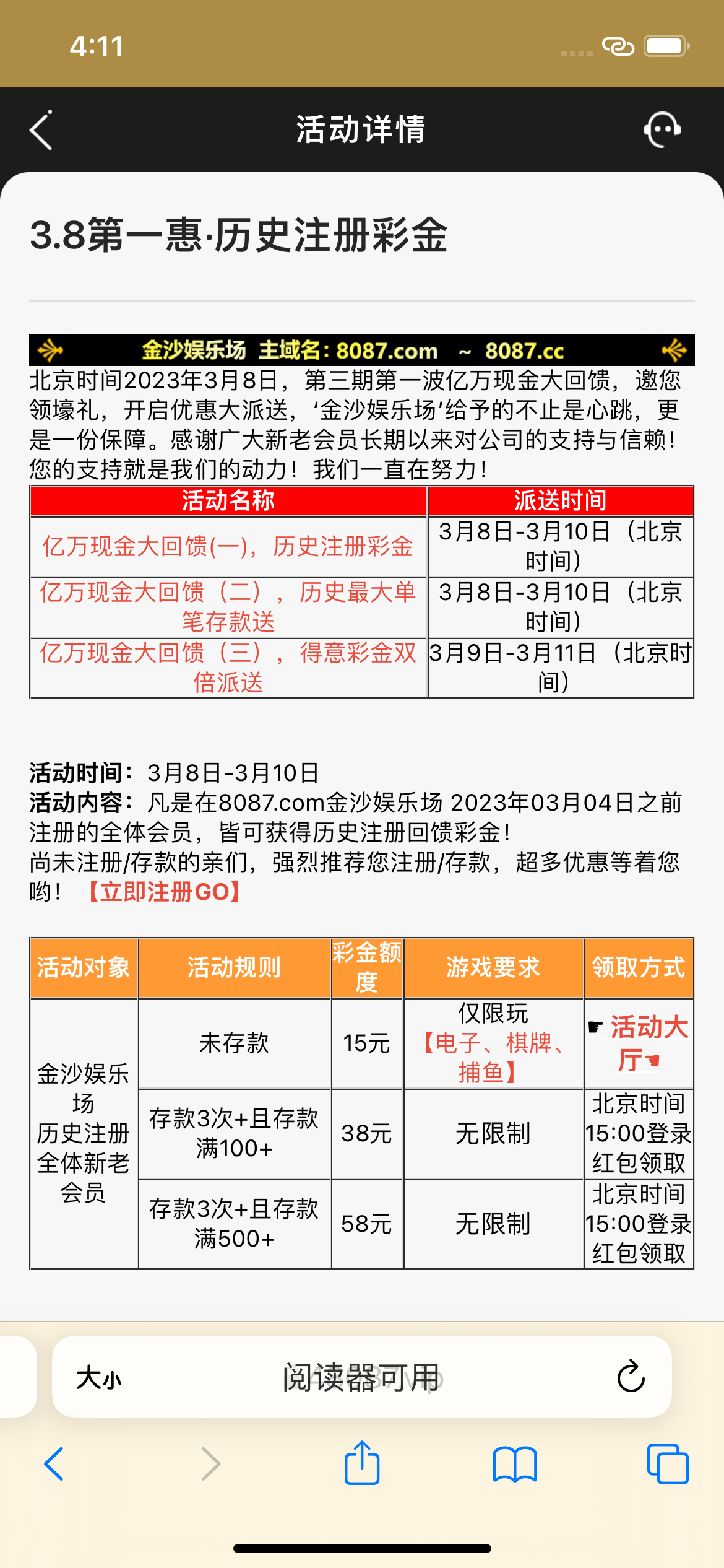 老用户3.4号之前注册的优惠大厅申请回馈15