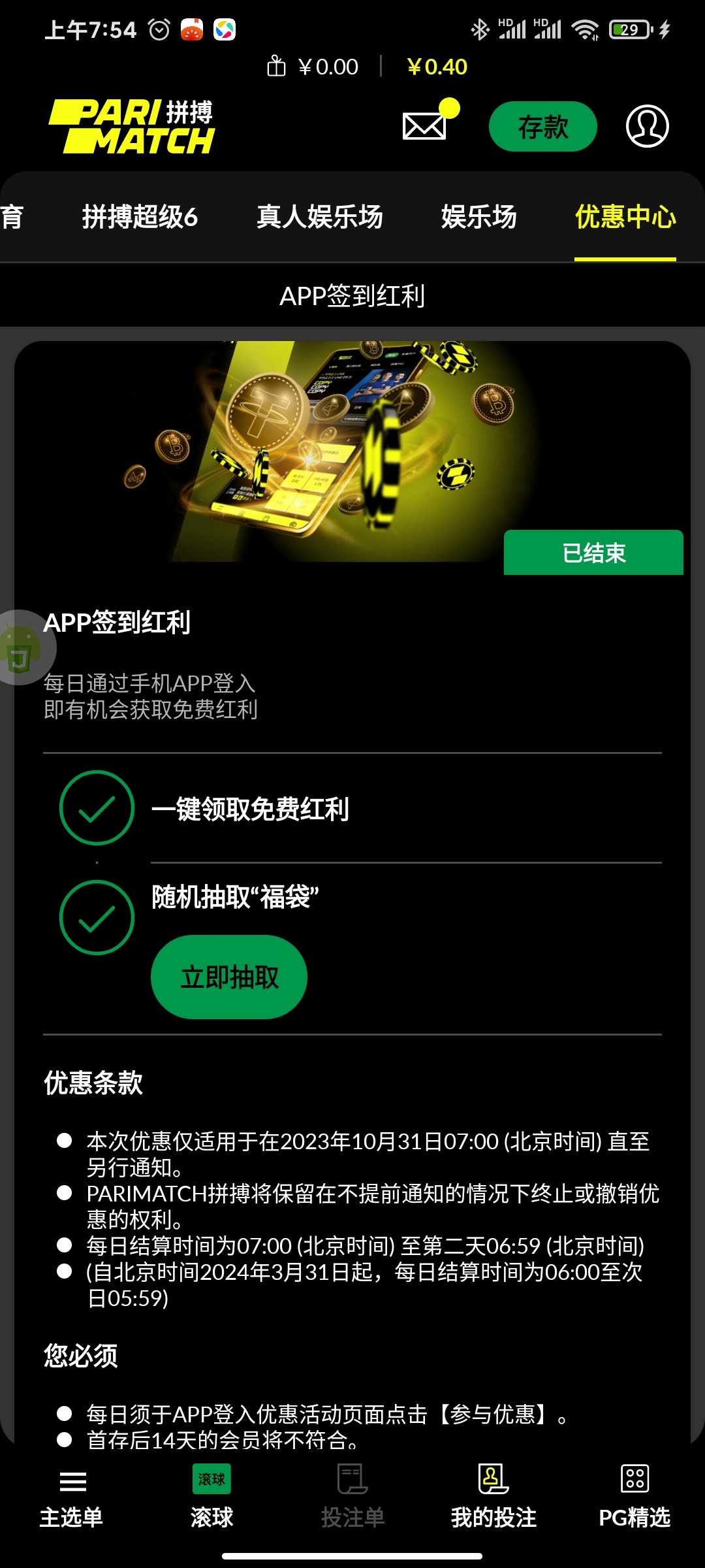 会员每天免费签到领彩金