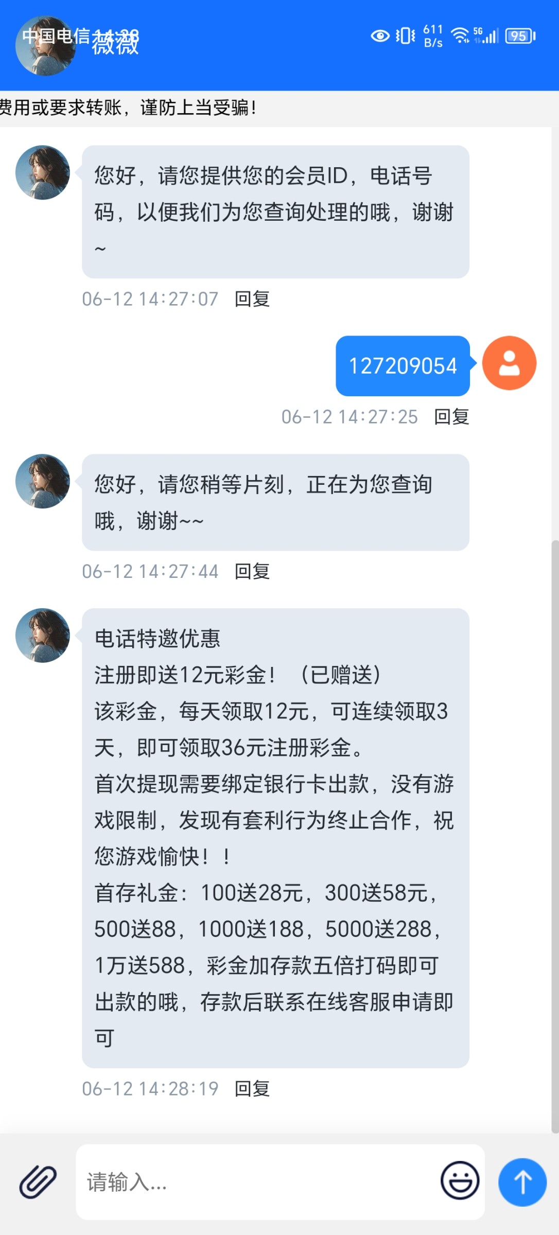 之前下载注册找客服申请电话特邀秒28 (又复活了现在注册送36分三天一天12)目前不查手机号