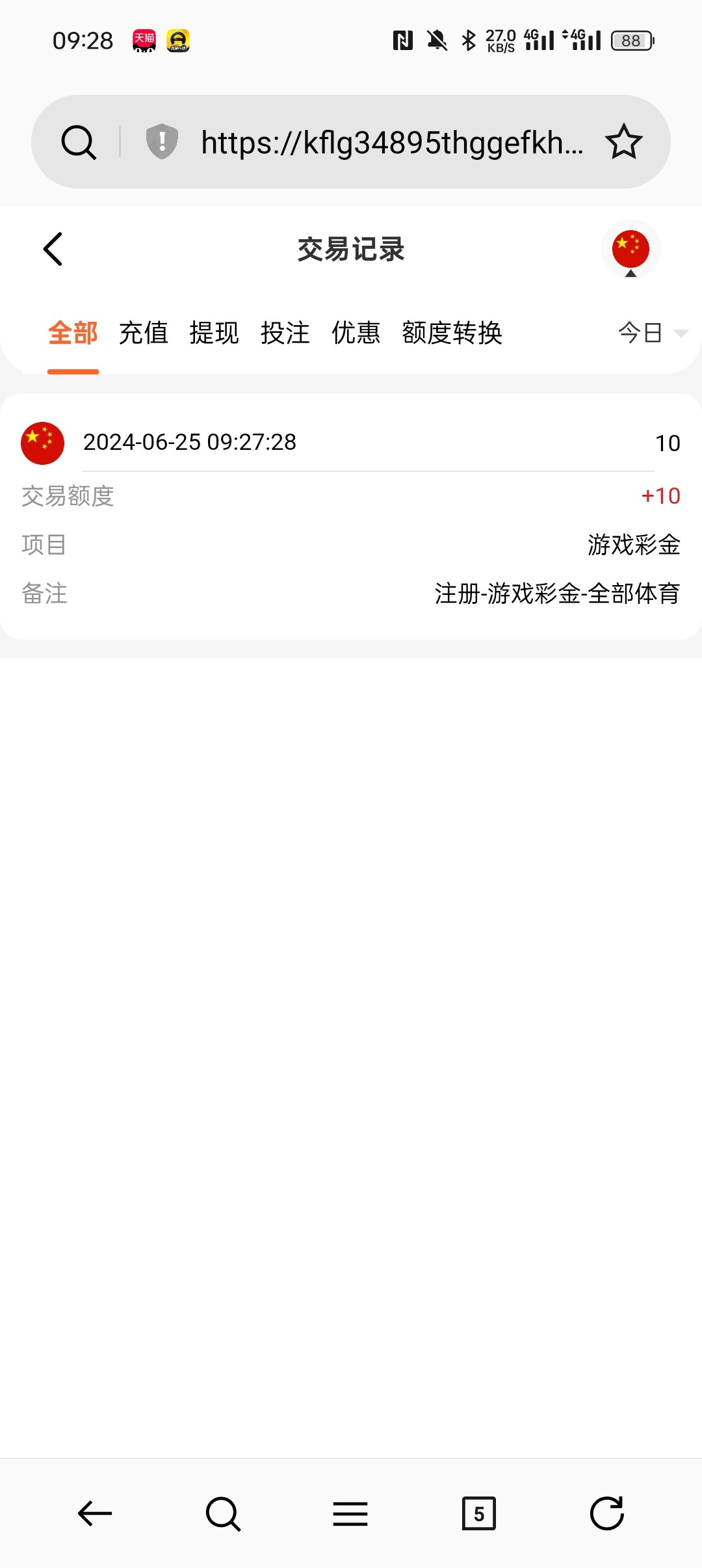 新用户注册秒10,只能玩体育,具体自测吧切记勿充值。