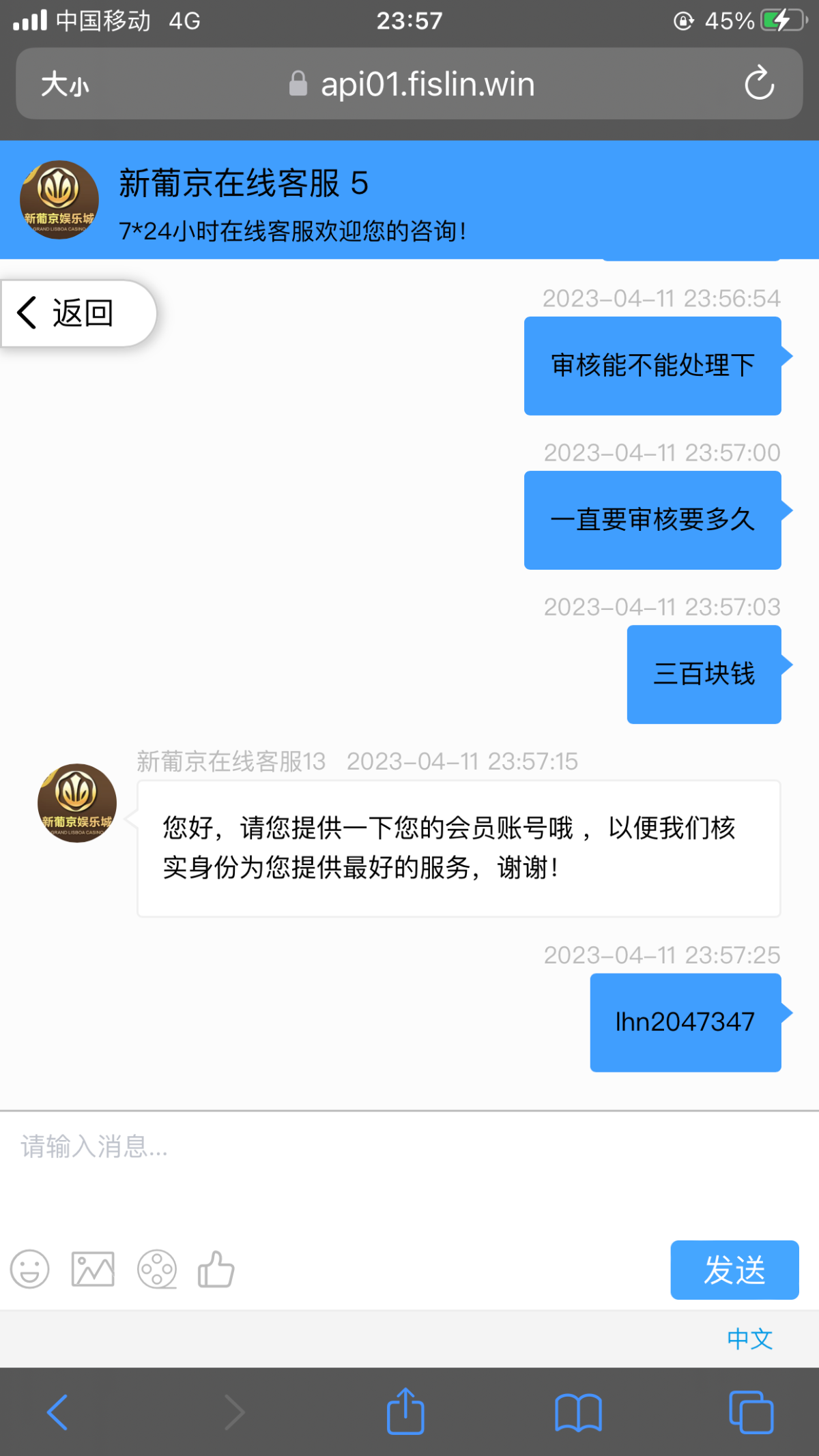 您好,非常抱歉,查询您的手机号不在我司特邀名单内不符合申请,请您关注一下新会员大礼包活动首次充值200即可参与哦,谢谢。cnm路人