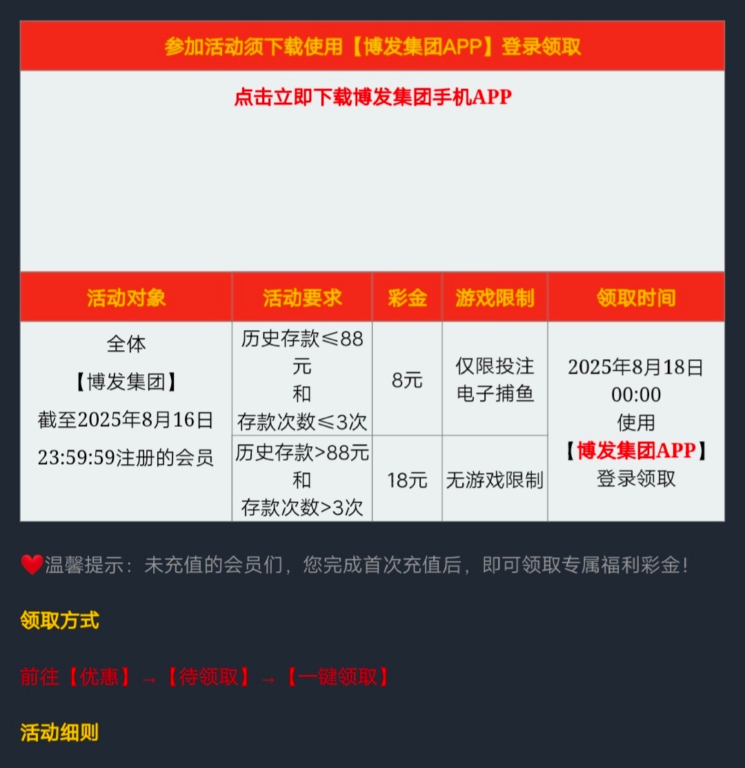 【博发集团】老会员回馈18彩金