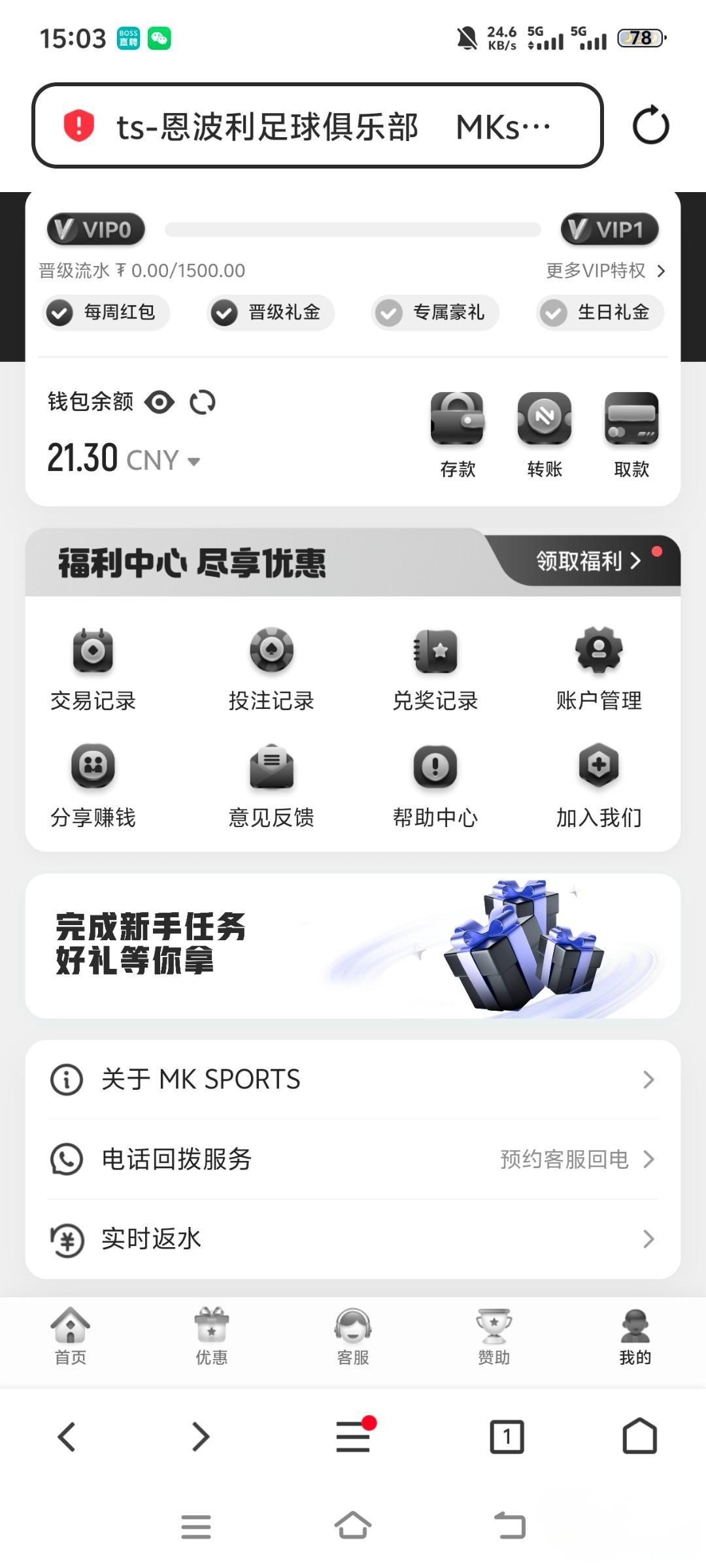 新手礼包绑定一个信息就送1u,前面两个会送到福利中心自己领取,后面一个直接到账一共21块自己选择u钱包还是rmb钱包个人,必须是三合一都是同名,出款自测