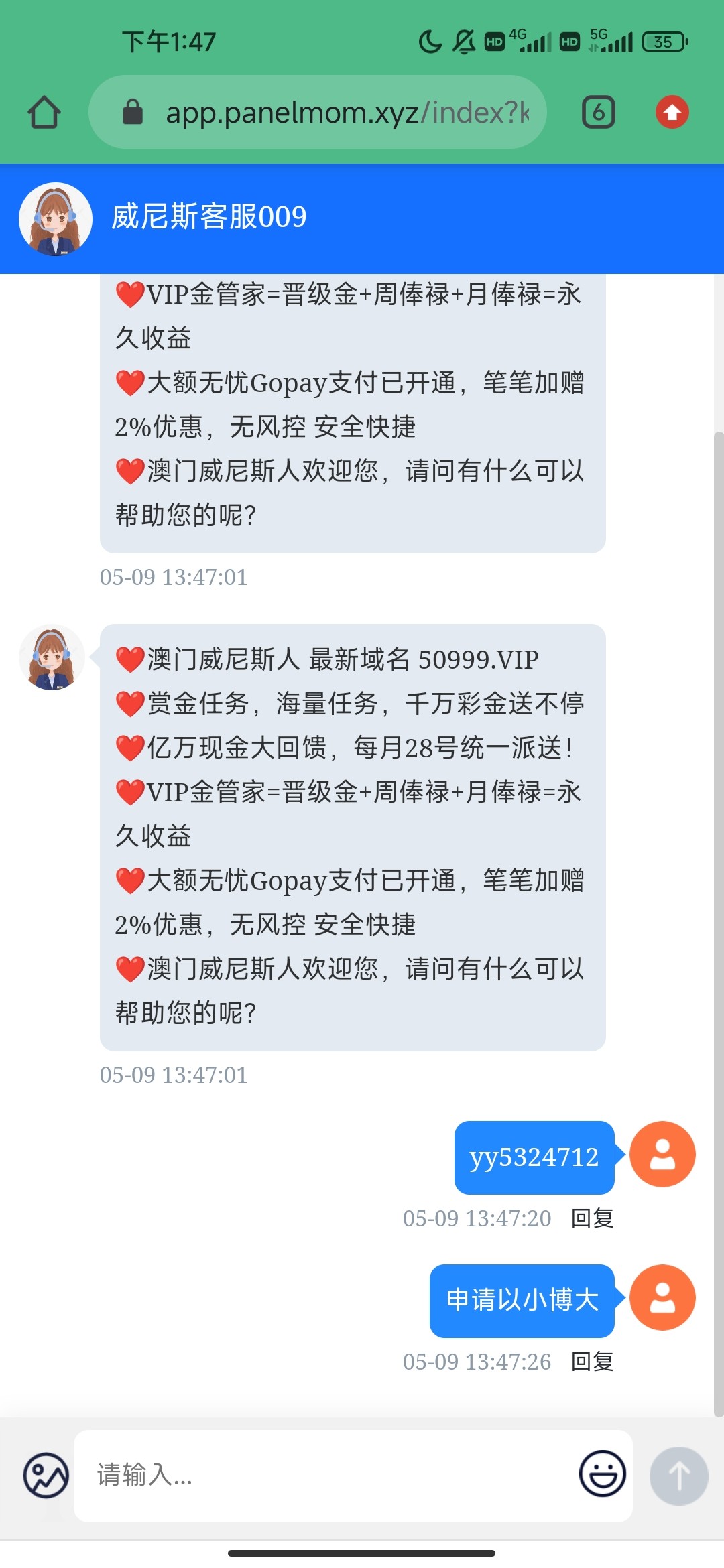 yy5324712 老哥 你的客服页面打得开吗
