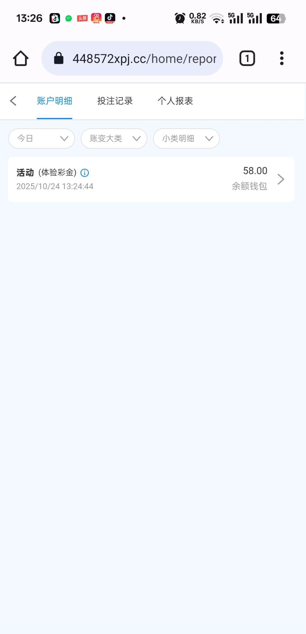 接到专员电话回访,10月20号注册的账号,未充值过,今天回访派送了58元新人体验金,满200提款,没有游戏限制,领到彩金第一时间发帖分享,没有账号的老哥建议先注册账号,坐等回访电话,网址448.com