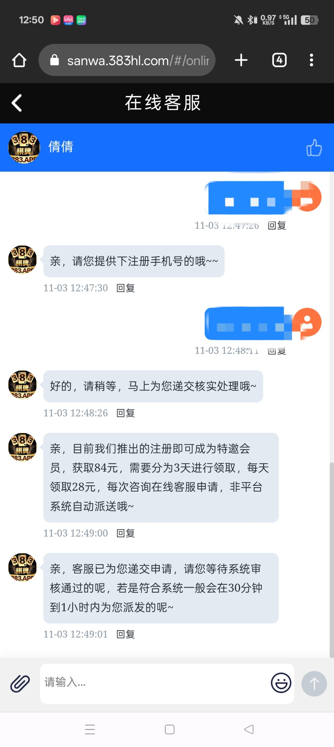 注册找在线客服碰瓷,送84,分三天送,383.app