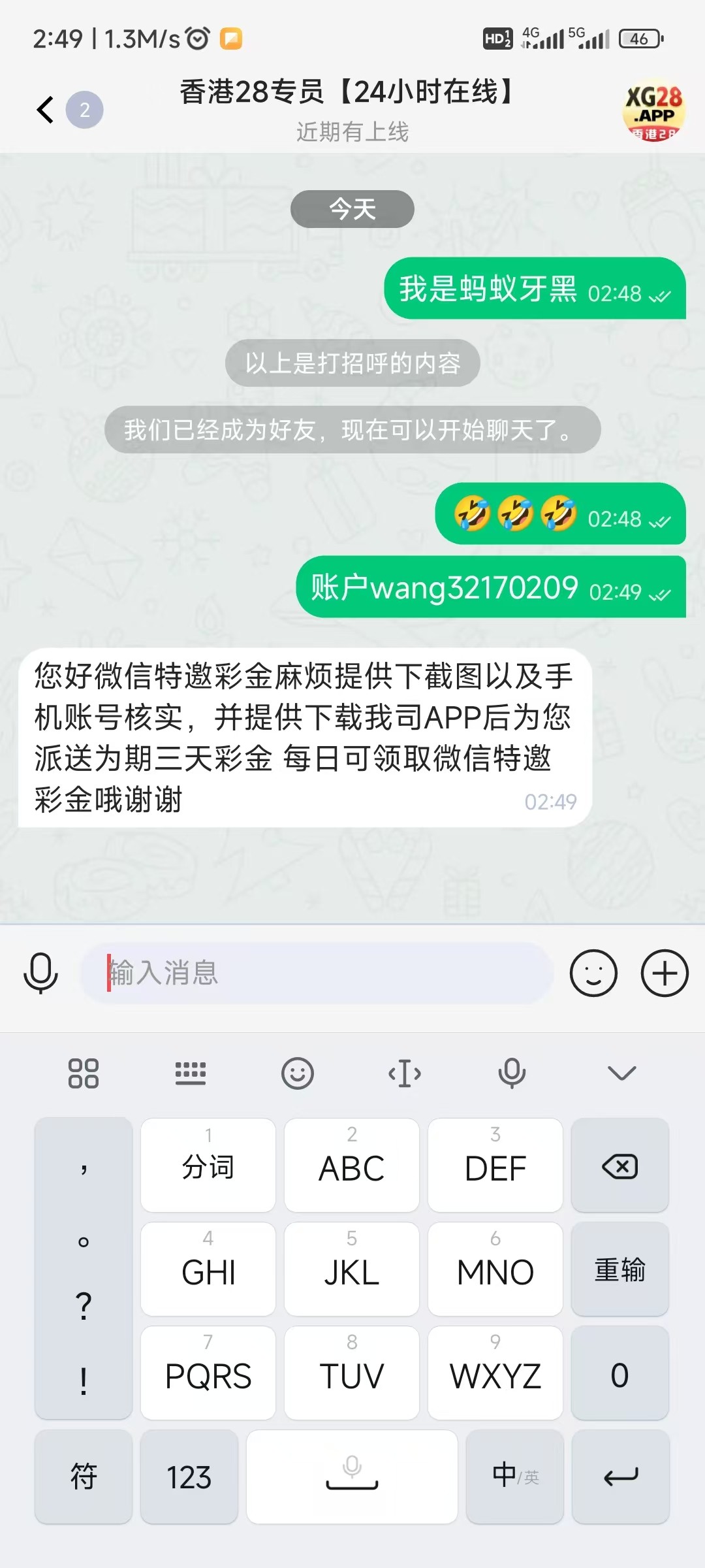 微信特邀香港28送58连送三天 交流
