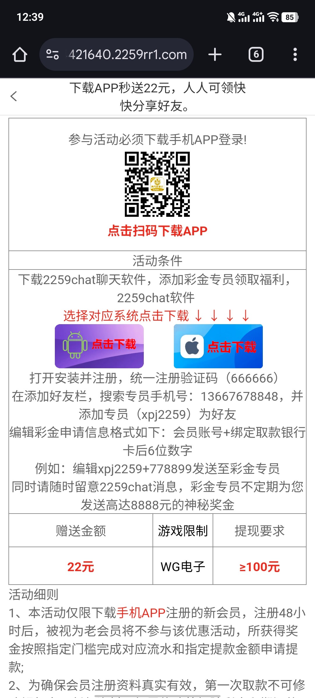 下载app和软件 绑定信息 发送信息自助申请 送22彩金 只能玩WG电子 100出