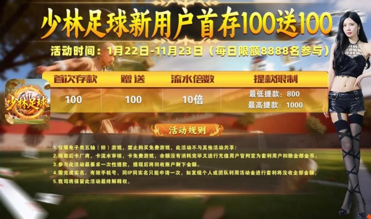 【少林足球】——(首存100+100)