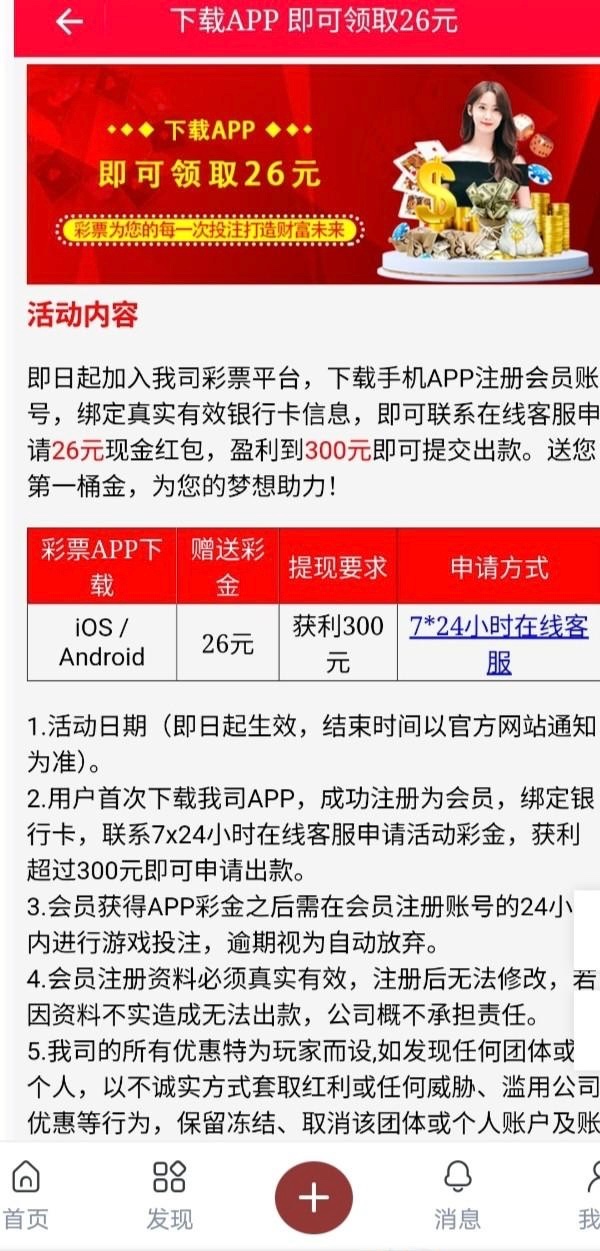 地址5986.cc 下载注册绑卡找客服申请下载彩金 发账号和登录点我的截图 客服回复很慢 我领到了没打出来 不会玩 只能彩票