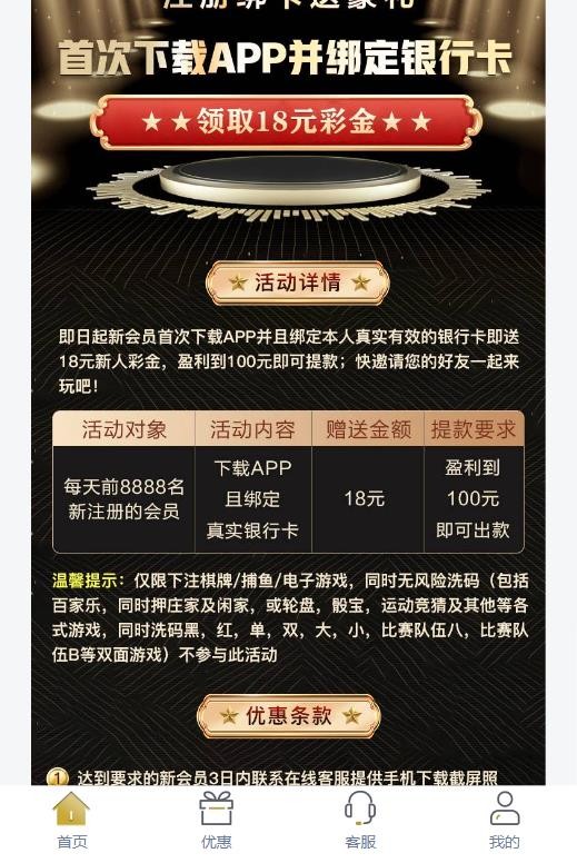 新用户下载APP注册绑卡 联系客服申请18彩金 大部分人都有